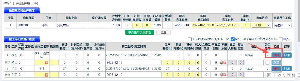操作步骤:生产管理-生产进度及汇报-生产进度汇报