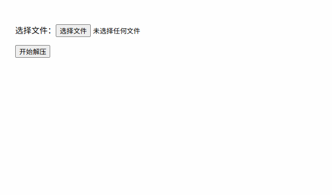 <p>选择文件:<input type="file" id="file" /></p><p><button id="button">开始解压</button></p><div id="output"></div>