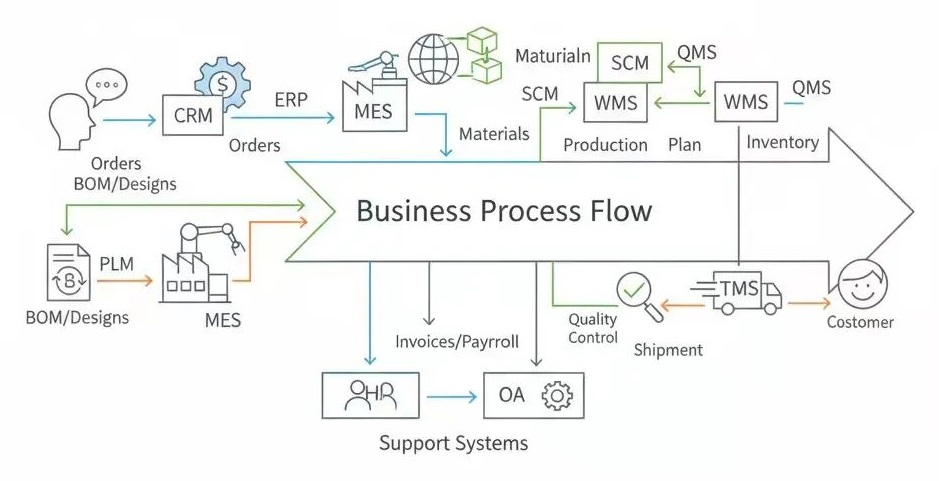 10大企业管理系统你都知道吗:ERP、MES、PLM、CRM、SCM、WMS、QMS、TMS、OA、HR