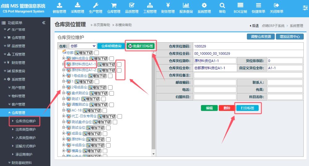 :如何打印点晴模切ERP系统仓库中的货位二维码标签?