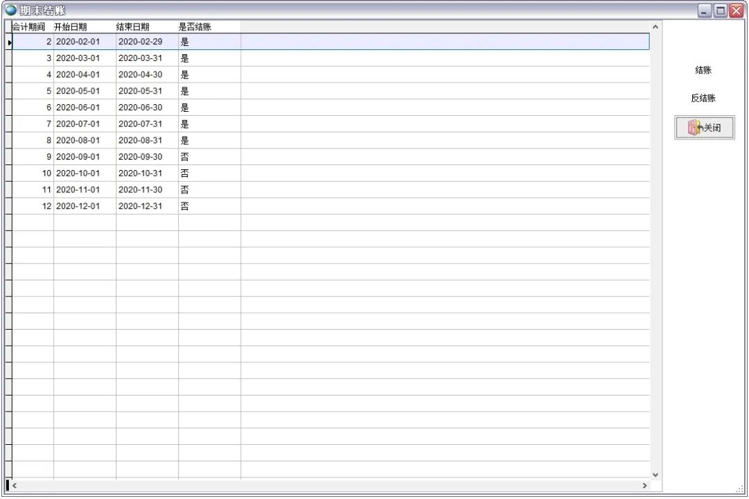 期末结账是关闭出入库单据、采购发票、采购付款单、销售发票、销售付款单的录入、修改、删除操作。以保证采购、销售、仓库模块数据与总账数据的一致性。