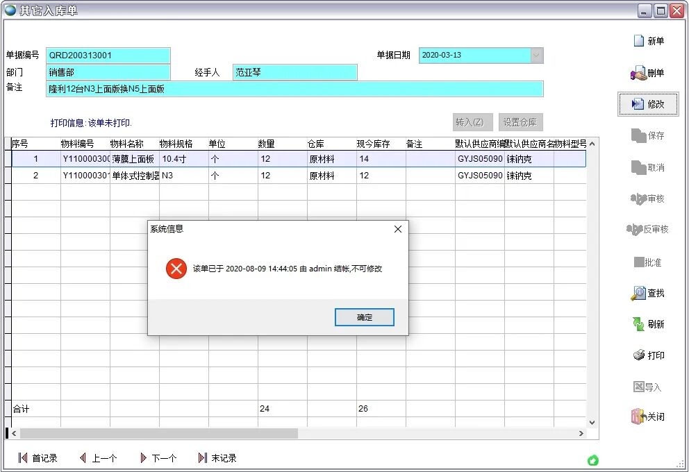 4号的时候发现2号做的入库单单价不对,修改为1,修改后库存平均单价就变成了1,这样3号做的出库单的单价和出库金额就不对了。