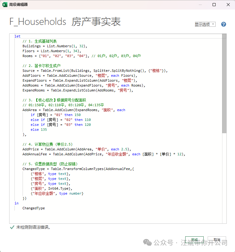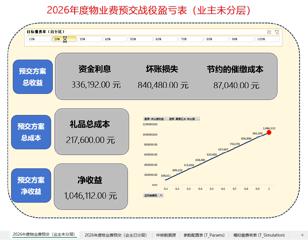 又到年底了,你家小区的物业这几天是不是都在催着你预缴下一年度的物业费了,然后给你送米送油的。咋一看,这物业下了血本了,业主这几千块钱的物业费似乎早晚都得交,现在交还能白拿几袋米或者几桶油,对个人来说确实还是划算的,但是这意味着物业公司真的是在亏本赚吆喝么?或者仅仅就是提高了收缴率么?真实的结果可能让你不敢相信!周末闲来无事,给大家搭建了一个预交物业费收益测算模型,发现不管怎么弄,物业都能从这个事情上面净赚个几十万不在话下。用 Excel (Power Query + Power Pivot + Excel可视化) 搭建一个动态精算模型,用数据告诉你:这不仅不亏,可能还是物业年度最赚的一笔生意。【牺牲毛利(给折扣/礼品)】 换取 【资金时间价值(利息)】 + 【运营成本节约】 + 【风险消除(坏账/流失)】。所以,只要符合“周期性收费 + 存在违约/流失风险 + 资金密集型”特征的行业,都可以直接套用这个测算模型。比如,以下3个最经典的场景,你可以直接把物业模型的参数改个名字就能用:2、B2B 企业的“现金折扣” (2/10, n/30)3、SaaS 软件/会员订阅 (月付 vs 年付)这个模型不只属于物业财务,它属于每一位需要做‘现金流决策’的管理者。为了还原真实场景,我模拟了一个大型小区的物业费收费数据。我通过 Power Query 的 M 函数,生成了 32栋楼 × 34层 × 4户/层,共计 4352户 的详细房产表。