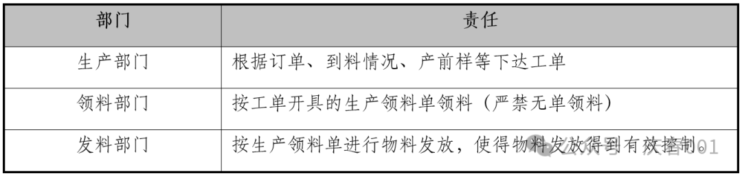 参与存货流转的各部门,应妥善履行相关物料职责,具体如下: