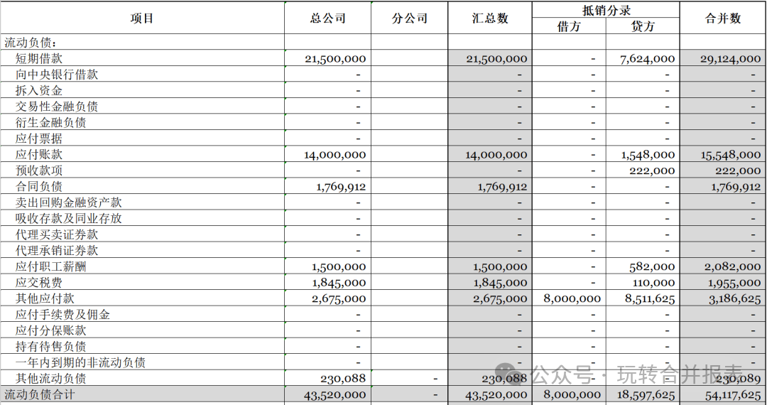 (4)分公司注销后,总公司将分公司的资产、负债、年初未分配利润、当期利润,通过分录的形式调整到总公司。(处置类似于子公司的处置的逻辑)