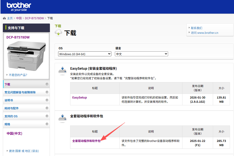 软件及驱动兄弟官网下载地址:下载 | DCP-B7578DW | 中国 | Brother