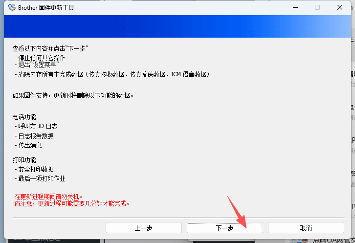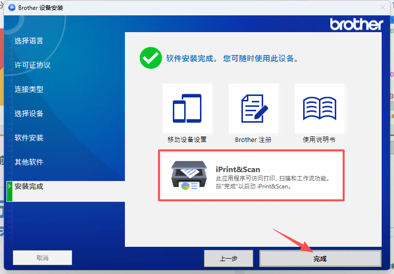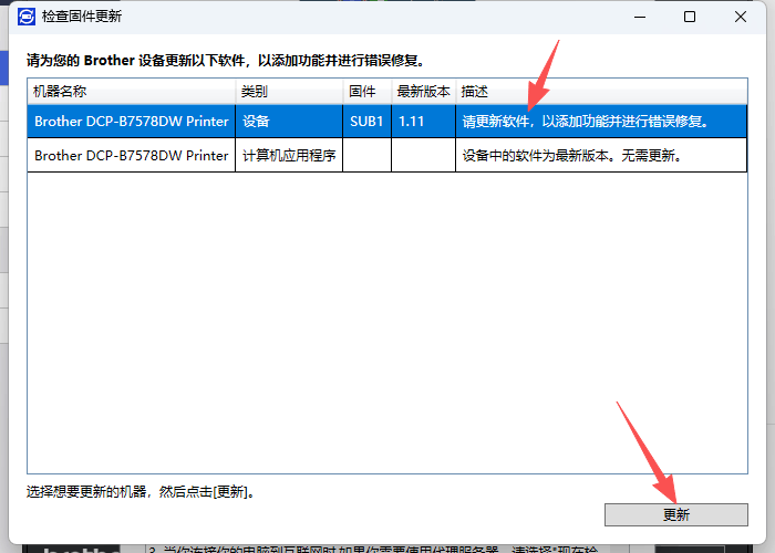 1、点击打开“Brother iPrint&Scan”,会出现弹窗需要更新“设备”和“计算机应用程序”,按照步骤操作点击更新。