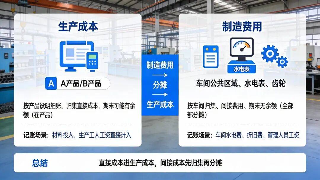二、两个核心账户:生产成本 vs 制造费用![]()