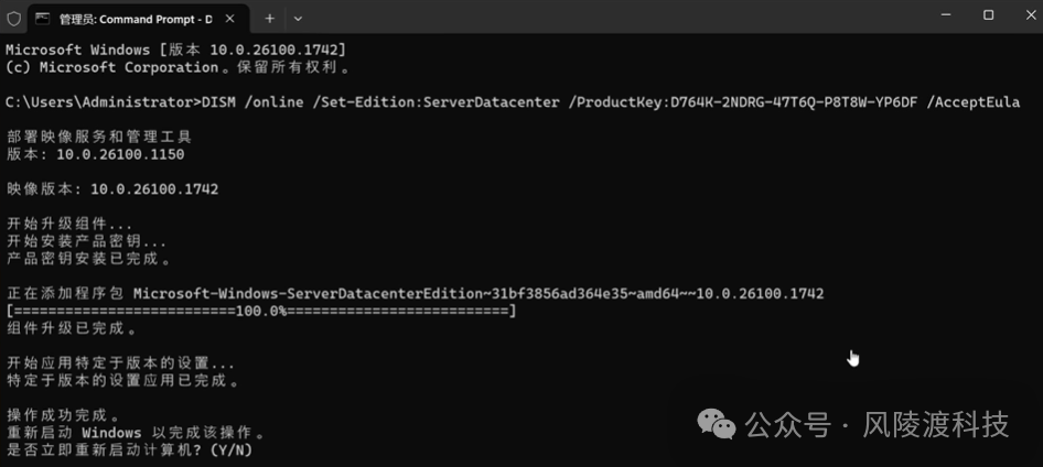 第二步:正式版系统激活1.同样以管理员身份打开 CMD 命令提示符; 2.输入微软官方提供的 KM 激活密钥,回车后会显示 “成功安装产品密钥”; 3.继续输入激活命令,回车等待,很快就会提示 “成功激活产品”; 4.打开系统激活中心查看,状态显示 “已激活”,就说明整个激活过程完成了,从此就能永久流畅使用正式版系统!