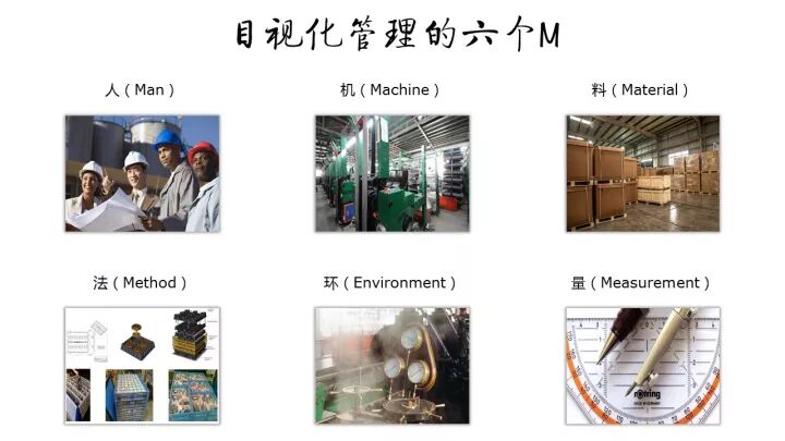 归纳下来总共有六个方面可以通过目视化管理来收集信息: