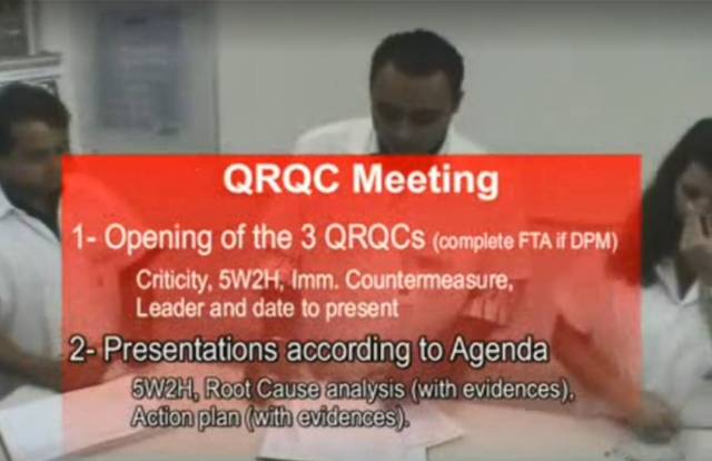 QRQC在1990年代,首创于日产汽车Nissan公司。在2002的时候,原日产高管Kazuo Kawashima把这套体系引入了法雷奥集团(Valeo Group),从此改变了法雷奥的企业文化。