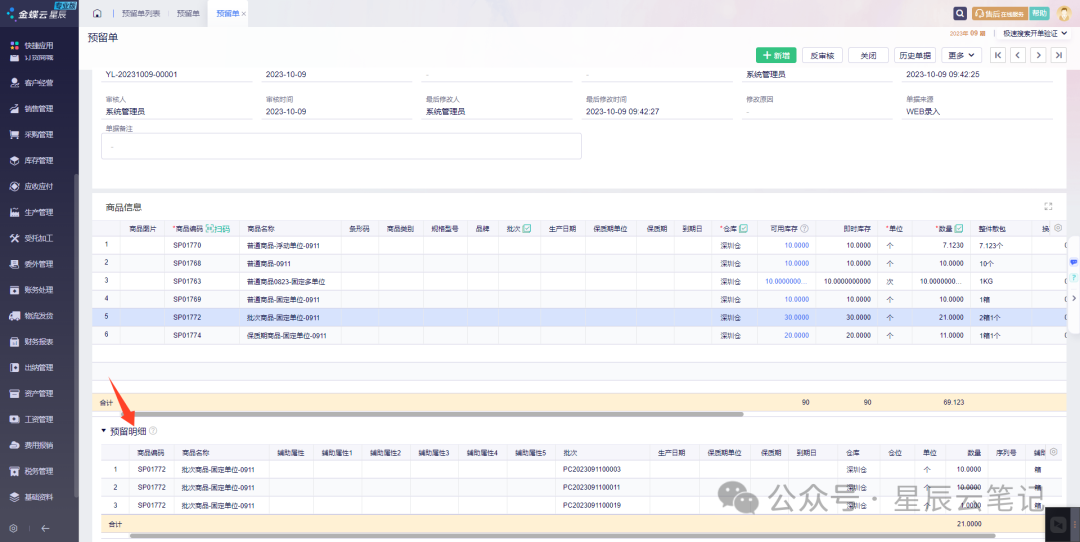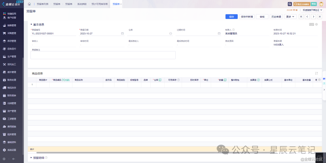 [点晴模切ERP]金蝶云星辰库存预留单功能介绍与说明