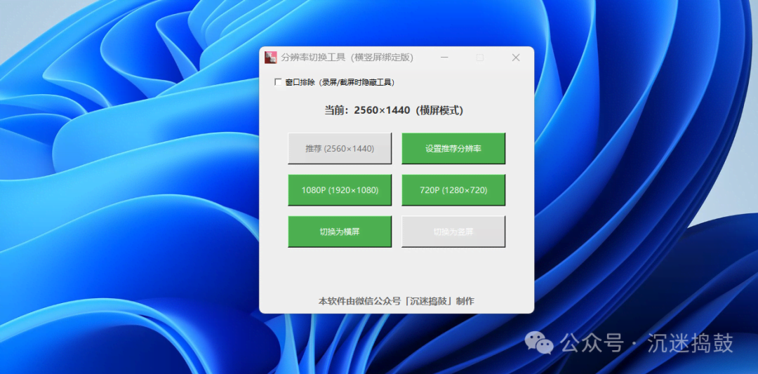 功能增强版:横竖屏切换尺寸变换,以及窗口排除隐藏等功能