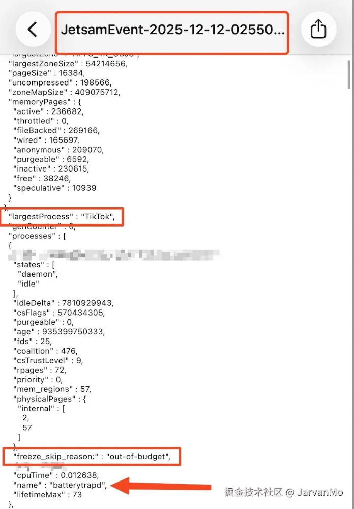 在我的 JetsamEvent 日志里,我看到了类似这样的记录:
