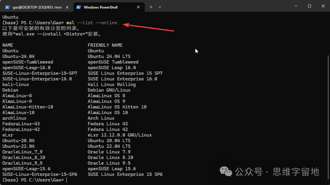 wsl 全称是 Windows Subsystem for Linux。 看名字就可以想到,这是 windows 系统中的 linux 子系统。 简单来说,就是在你的win系统中,安装一个Linux。 该工具的底层逻辑本文就不分析了,读者可以自行查阅。本文直接讲怎么用: wsl的安装用管理员角色运行PowerShell。 输入wsl --install ![]() 没错!就这一条指令就可以了。 安装完成之后,需要重启你的计算机。因为一些底层功能需要重启才能生效。 linux系统的安装有了工具还不够,因为工具只是一个平台,我们还需要在平台上搭建系统。 下面分享三种安装方式: 1、默认安装wsl --install指令其实已经默认帮我们安装了一个Ubuntu系统。 你需要输入用户名以及密码来配置这个Ubuntu系统。 ![]() ![]() 但是,因为网络问题或者其它原因,这个Ubuntu系统不一定能安装成功。 如果不成功的话,你可以参考下面两种方式。 2、指令安装输入wsl --list --online指令,查看可以安装的操作系统。 ![]() 选择一个操作系统,例如 Ubuntu-22.04。 输入wsl --install -d Ubuntu-22.04 请注意:因为网络问题或者其他原因,这个方式可能依然会失败,如果失败了,你可以参考最后一种方式 3、store安装打开你的 win 系统的 store 商城。 ![]() ![]() ![]() 然后,搜索Ubuntu,选择其中一个开始安装。插句题外话:安装任何工具,建议安装带有 LTS 后缀的版本,因为这是官方发布的、长期维护的版本。 linux启动安装 linux 系统成功之后,我们尝试启动它。启动 linux 的方式有如下两种: 1、命令行启动输入wsl --list查看已安装的linux系统。 ![]() 输入 wsl -d Ubuntu-22.04 启动指定的操作系统。 第一次进入系统的时候,会让你输入用户名和密码,跟着提示操作就可以了。 ![]() 2、图形化启动你可以在开始菜单找到对应的图标,鼠标点击启动。 ![]() 另外,如果想退出 linux 系统,回到win系统的话,就输入exit即可。 linux系统卸载如果这个系统不想要了,可以通过以下两种方式删除: 1、store卸载如果你的linux系统,是通过store安装的,你可以在store工具中卸载。如下所示: ![]() 请注意,这个方式是无法将linux系统完全清理干净的,因为你本地依然保留了已经下载好的linux系统。 所以,你需要执行下面的操作。 2、指令卸载命令行输入 wsl --unregister Ubuntu-22.04。 ![]() 可以看到,对应的linux系统已经被清理干净了。 以上就是 wsl 工具安装、启动、卸载的基本操作,有了 wsl,再也不怕把电脑搞乱了,快来试一下吧!! 阅读原文:https://mp.weixin.qq.com/s/P_1qFSwptHooIaUQ0Uavew 该文章在 2026/3/4 15:33:33 编辑过 |