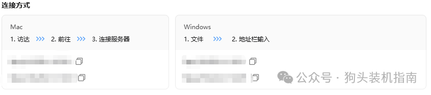 一、SMB(Server Message Block)最推荐的日常局域网文件共享协议,微软开发,目前为 NAS 主流协议,Linux 可通过 Samba 实现支持。 优势劣势Linux 原生不支持,需额外安装 Samba 组件; 协议开销较大,跨公网 / 跨网段访问性能差、配置麻烦; 老旧版本(SMB1.0)存在勒索病毒等安全风险。 适合家庭多设备日常文件共享、媒体播放; 办公室 Windows/Mac 混合环境文件协作; Mac 端 Time Machine 备份 NAS; 智能电视 / 盒子直接播放 NAS 视频。 使用方式Windows:文件资源管理器地址栏输入 \NAS_IP\ 共享名; macOS:Finder→前往→连接服务器,输入 smb://NAS_IP/ 共享名; Linux:执行命令 mount -t cifs //NAS_IP/ 共享名 /mnt/point -o username=xxx; Android/iOS:通过 Solid Explorer、FE File、Explorer 等文件管理器添加 SMB 服务器。