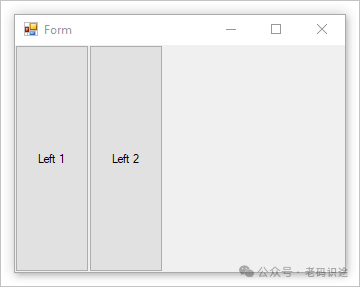 如果控件的 Z-order 倒置,停靠在左侧的控件将拥有更多的初始可用空间。 该控件使用容器的整个高度。 停靠在顶部的控件具有较少的水平空间。