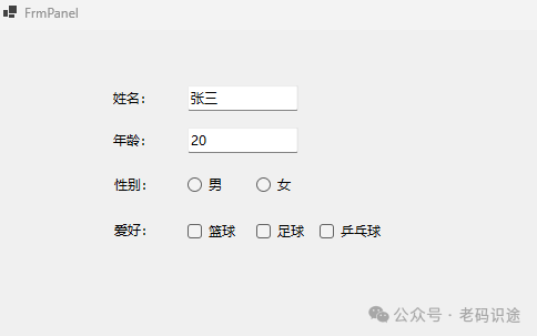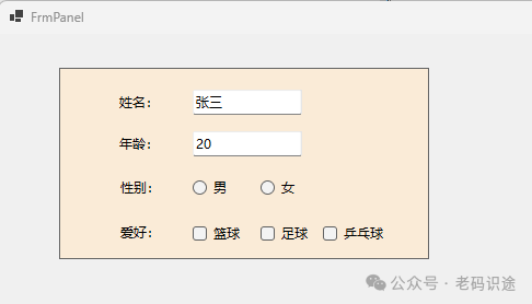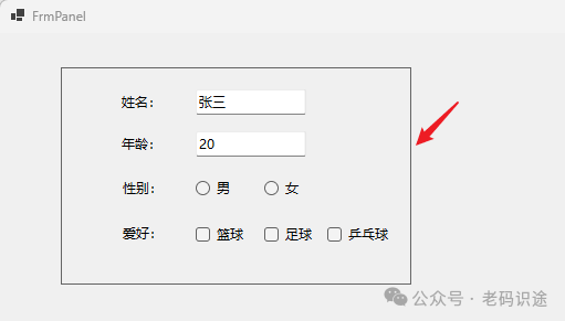 • Panel,用于分组和布局其他控件,支持滚动条。