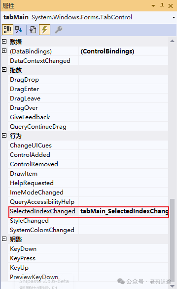 当在TabControl的选项卡之间进行切换时,会触发SelectedIndexChanged事件,可以在此事件中处理需要的业务逻辑,如下所示: