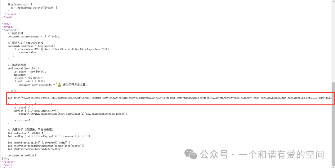 三、如果强行看源码,可以看到加密后的源码,也是一串加密代码