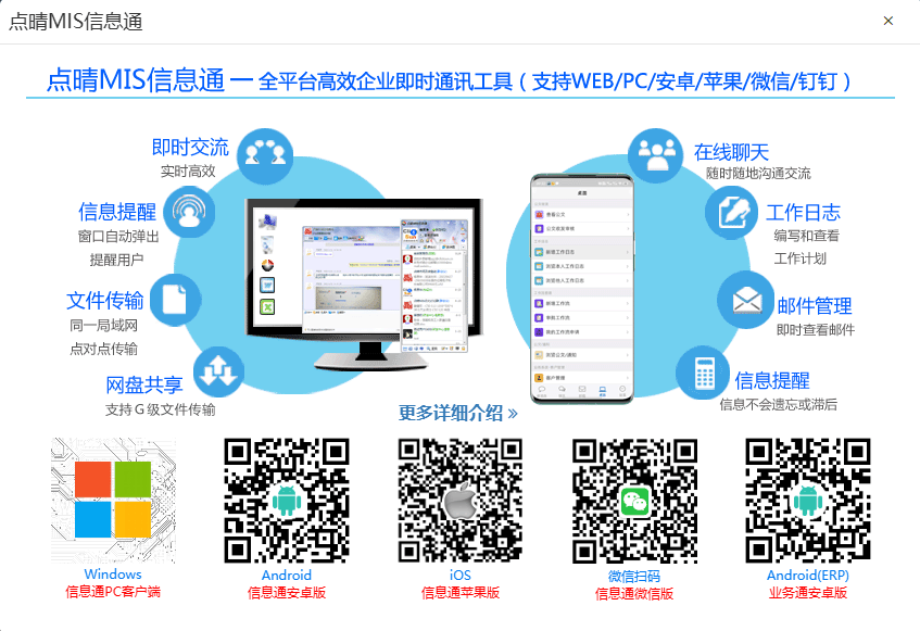 点晴MIS信息通手机APP或PC客户端下载地址如下:
