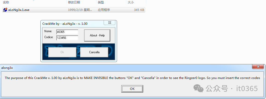 接上一篇软件逆向破解零基础入门实战5我们继续学习软件逆向破解零基础入门第6篇。这次的练习程序也是Delphi写的程序,功能也相对简单。一个简单的crackme程序,难度1颗星,要求输入正确的用户名和注册码将下面2个按钮隐藏显示出后面的图片。上一篇中讲到找按钮或功能函数是将反汇编出来的所有段头进行下断点,看看它在哪里断...