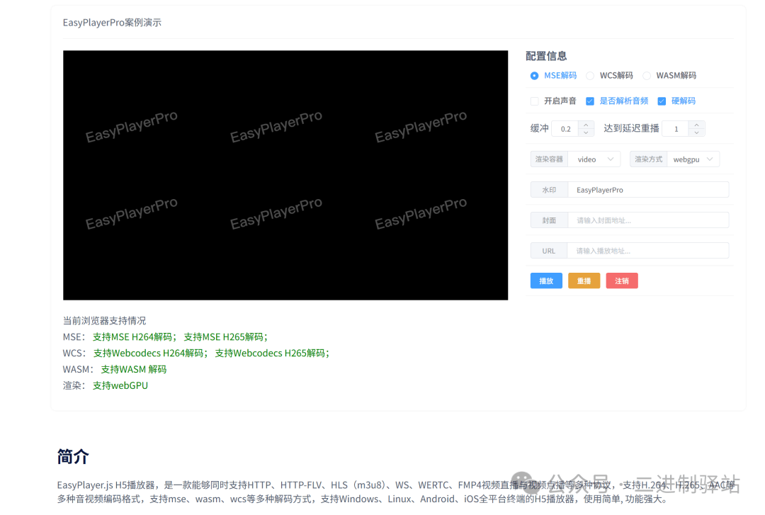 EasyPlayer.js是一款全平台、多协议、多功能的H5视频播放器,主打一个我全都要——截图、录屏、低延迟、全协议支持,开箱即用。它到底能干什么协议支持市面上常见的视频流协议,它基本都支持:•HTTP-FLV•HLS•WebSocket•WebRTC•fMP4•H264/H265简单来说,你不需要因为后端换了一种...