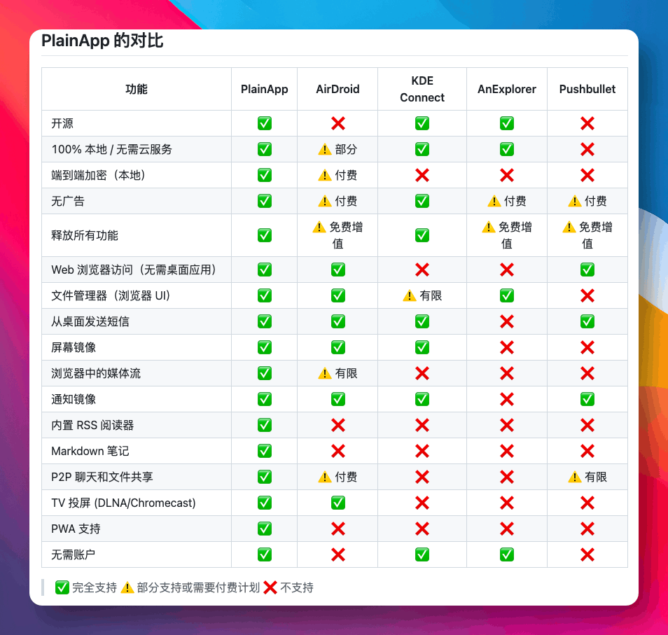 手机连电脑传个文件,居然这么麻烦。数据线找不到,翻箱倒柜找了五分钟。好不容易用上AirDroid,发现核心功能要付费。换个云盘中转,上传下载两头折腾,数据还不知道经过了谁的服务器。直到最近发现了PlainApp这个开源工具,才算真正解决了这个问题。手机上装好这个App,点一下Start,局域网内随便打开一个浏览器,输入...