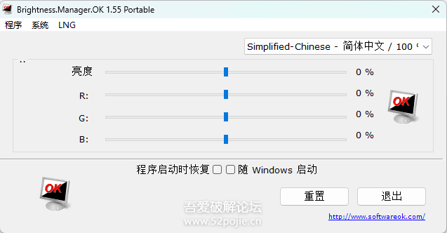二、工具简介:Brightness.Manager.OK是一款Windows专用、轻量免安装的屏幕亮度调节小工具,专门解决台式机、部分笔记本/显示器无法用快捷键调亮度的问题。