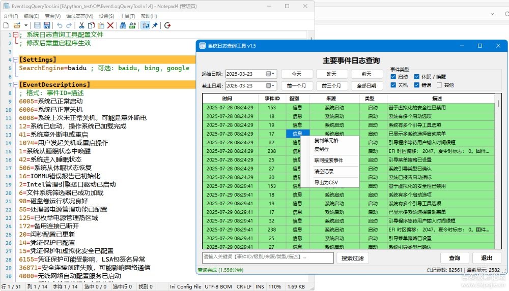 分享一个自己做的一款轻量级的Windows事件日志查询工具,提供友好的界面,