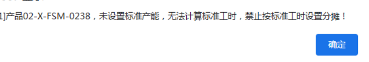 :点晴ERP-弹出提示:未设置标准产能,无法计算标准工时,禁止按标准工时设置分摊