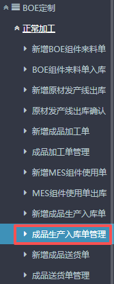 1.进入ERP系统之后,点击“BOE定制”,点开“正常加工”,然后找到“新增成品生产入库单”