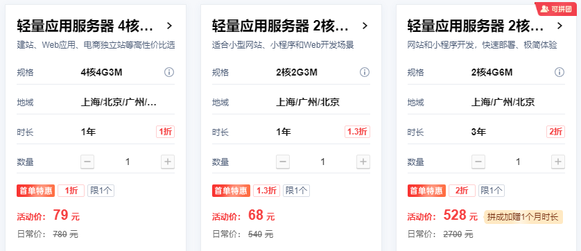 下面这几款限时特惠云服务器,配置实用、价格亲民,部分支持续费不涨价,无论是个人开发者还是中小企业,都能放心入手,一步到位。 一、阿里云 —— 新用户首选,续费同价真香 如果你是第一次接触云服务,阿里云是稳妥可靠的选择。活动力度大、系统成熟、稳定性强,更重要的是——部分套餐支持续费价格与首年一致,这个“隐藏福利”很多老用户都没注意到。 推荐套餐一:轻量应用服务器 2核2G + 200M峰值带宽 推荐套餐二:2核2G3M + 40G SSD(买2年) 企业优选套餐:2核4G5M + 80G SSD