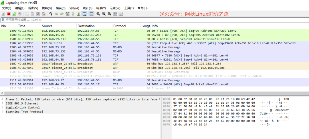 1.打开whireshark抓包工具,选择对应网卡,即可开始抓包,如下图所示:
