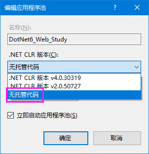 (2)应用程序池选择第1步中新建的“DotNet6_Web_Study”
