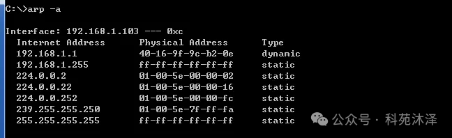 询ARP缓存表的命令及显示